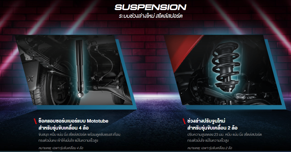 – ช่วงล่างใหม่แบบ Sport พร้อมช็อคอัพแบบ Monotube (รุ่น 4WD)
