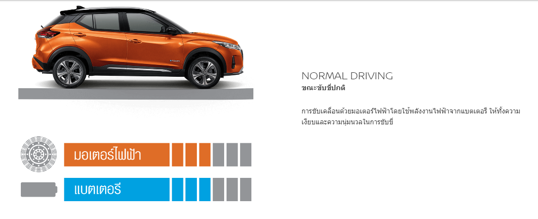 นิสสัน พัฒนาเทคโนโลยีขับเคลื่อน ด้วยพลังงานไฟฟ้าใหม่ โดยไม่ต้องชาร์จไฟ ที่มีเพียงหนึ่งเดียวของโลก กับการเปิดตัวในประเทศไทยเป็นครั้งแรก โดยเปลี่ยนน้ำมันให้เป็นพลังงานไฟฟ้าส่งไปเก็บยังแบตเตอรี่ขับเคลื่อนด้วยมอเตอร์ไฟฟ้า 100% ให้ทุกการขับขี่ไปได้ไกลกว่าเหนือทุกข้อจำกัด ควบคุมได้ดั่งใจ เร่ง แรง แซง ทันใจ เปลี่ยนรูปแบบการใช้ชีวิต ให้ไม่ธรรมดาอีกต่อไป